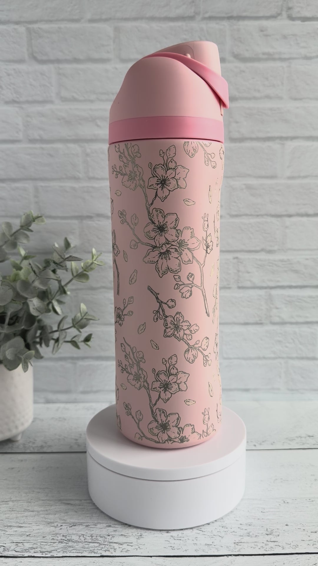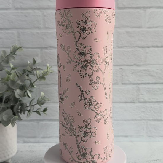 24 Oz Tumbler with Cherry Blossom design on Pink RTS