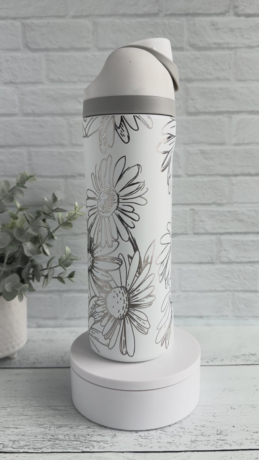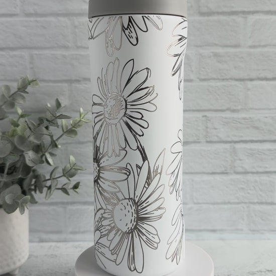 24 Oz Tumbler with Daisy design on White RTS