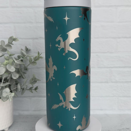 24 Oz Tumbler with Dragon design on Dark Teal RTS