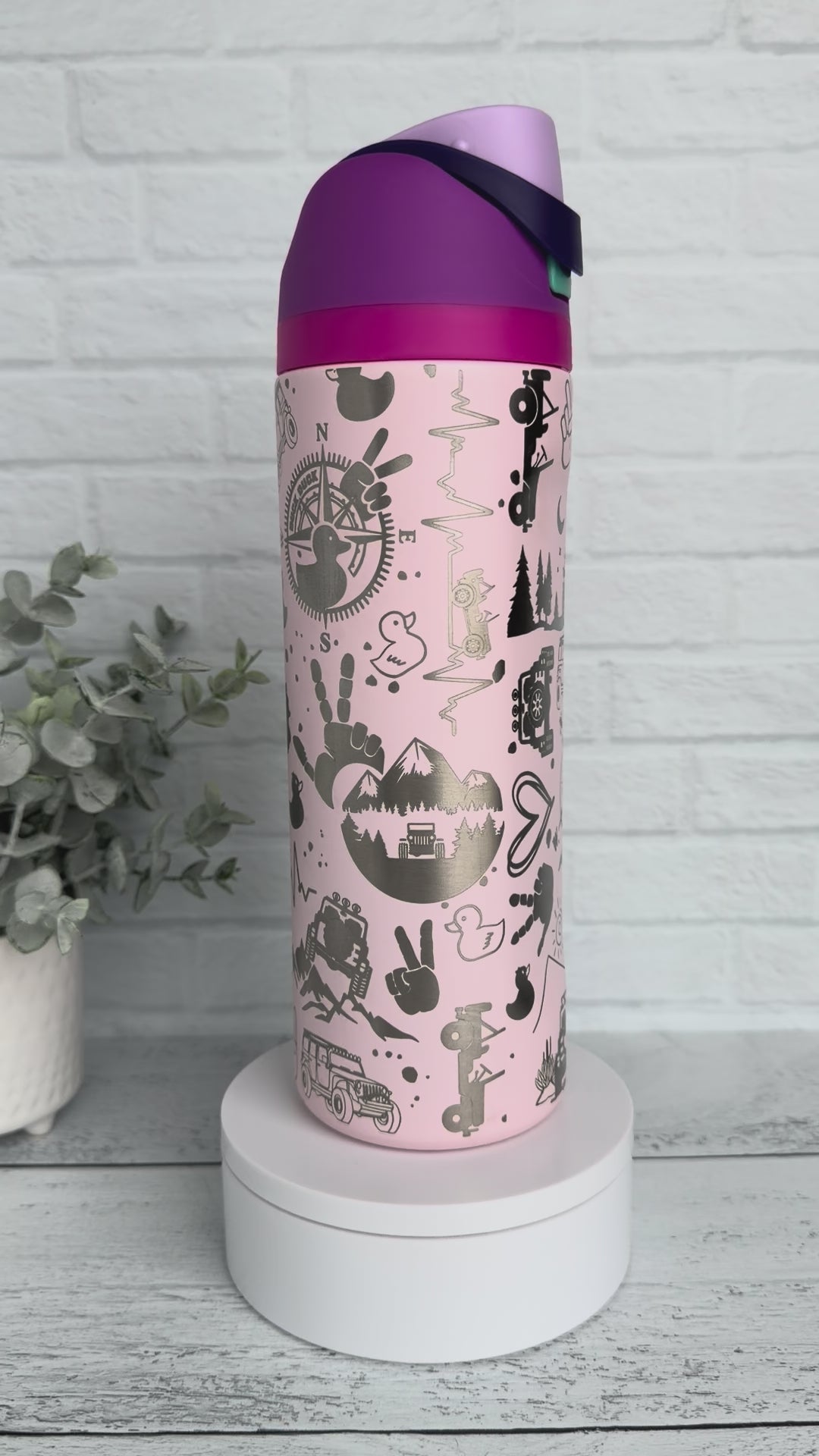 Stay stylish and hydrated all day with our 24 oz stainless steel tumbler, expertly laser engraved for a sleek, permanent design that won't fade or peel. Crafted from premium double-wall insulated stainless steel, this tumbler keeps drinks icy cold for hours. The generous 24 oz capacity means fewer refills, while the sturdy top-handle and convenient flip-straw lid make it perfect for on-the-go sipping. Whether it's water, iced tea, or your favorite chilled beverage, this tumbler combines durability, function, and a custom touch that's uniquely yours.