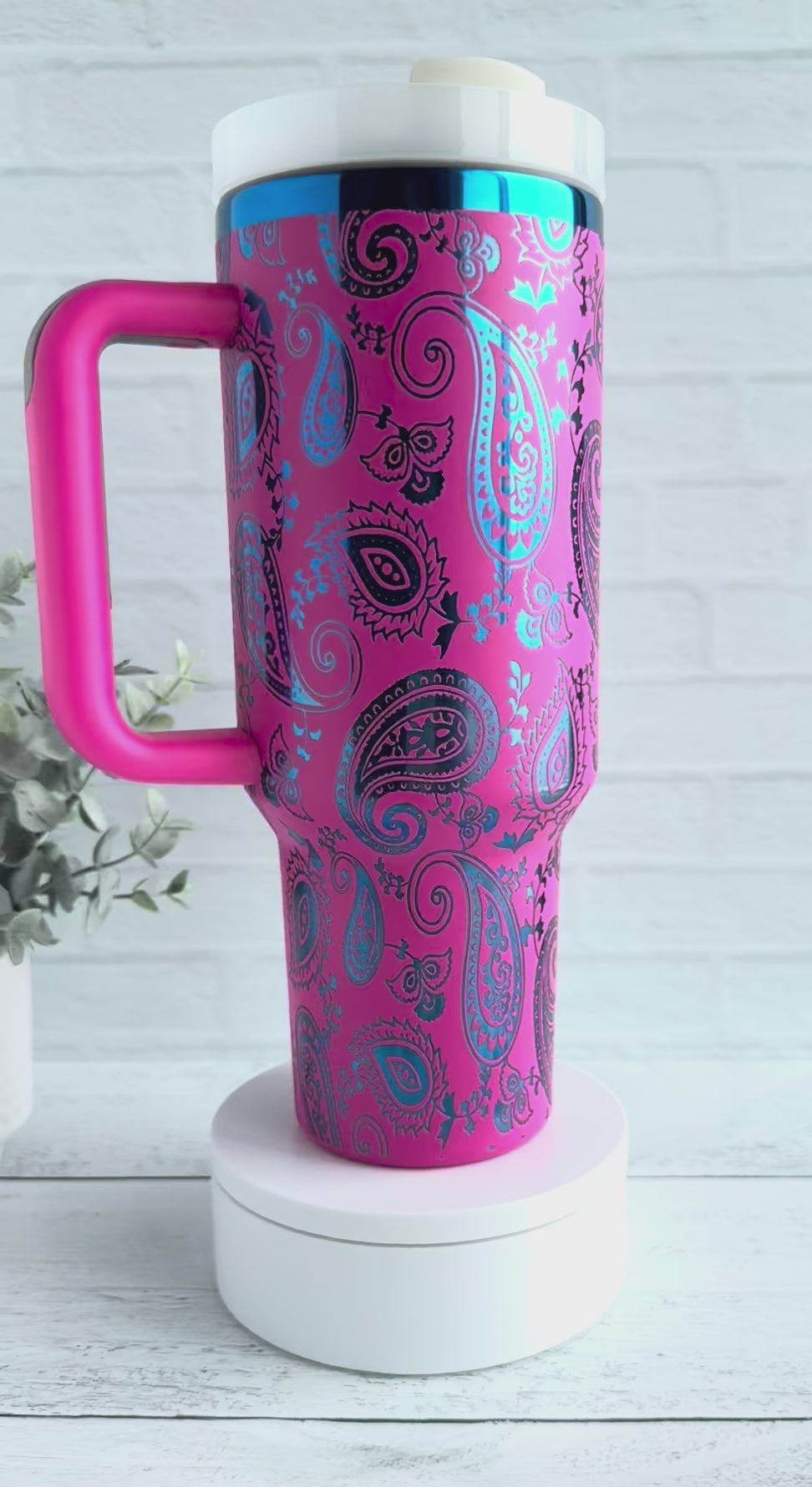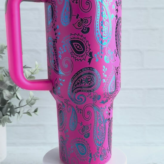 40 oz Paisley on Hot Pink engraves Blue RTS