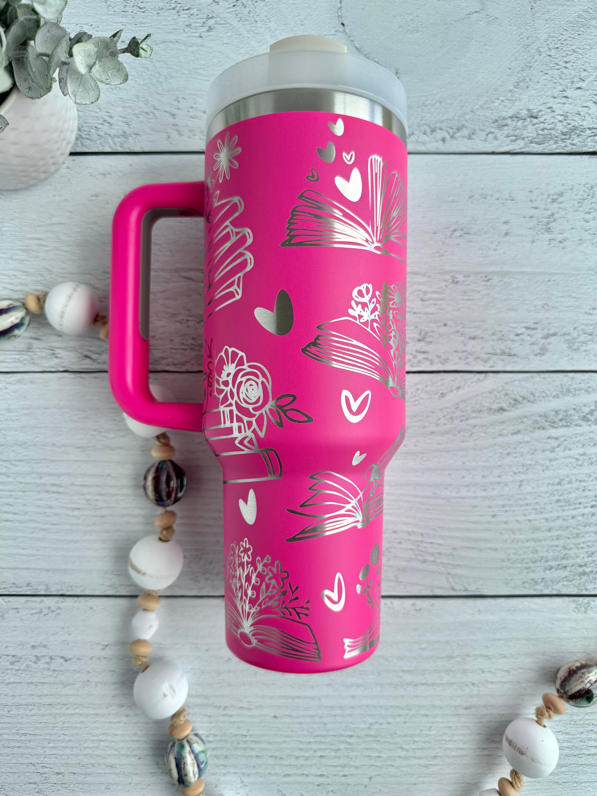 40 oz Tumbler - Book Lover on Hot Pink RTS