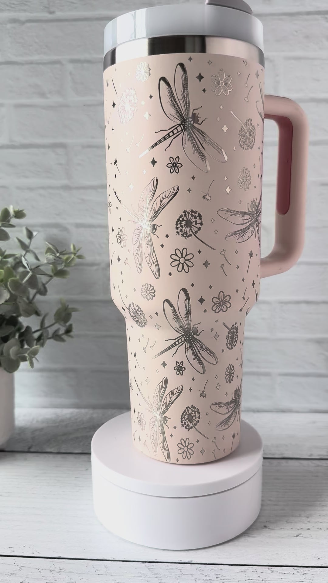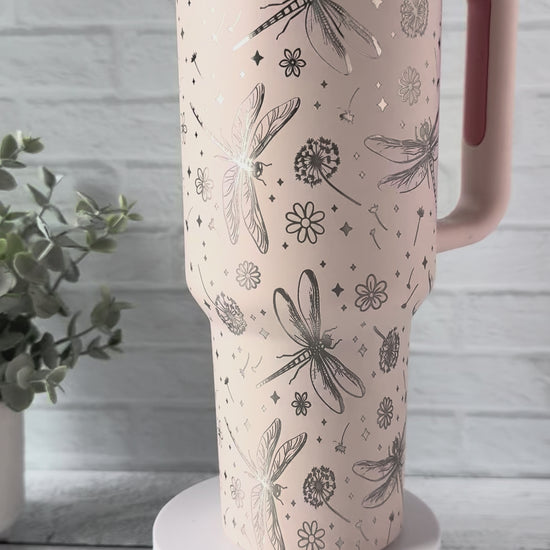 40 Oz Tumbler - Dragonfly on Rose Quartz RTS