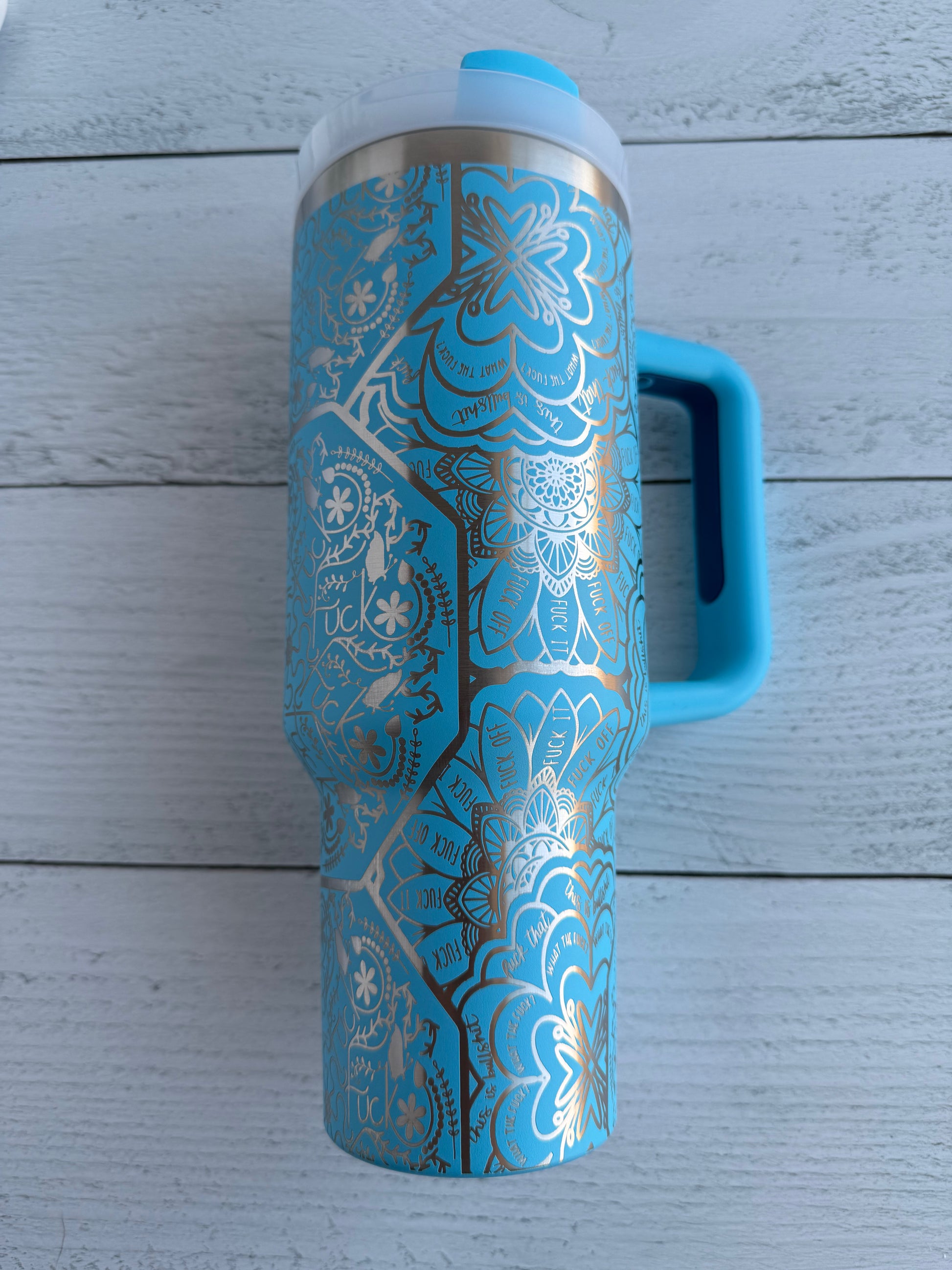 40 oz Tumbler - F-Bomb Mandala on Caribbean Blue RTS