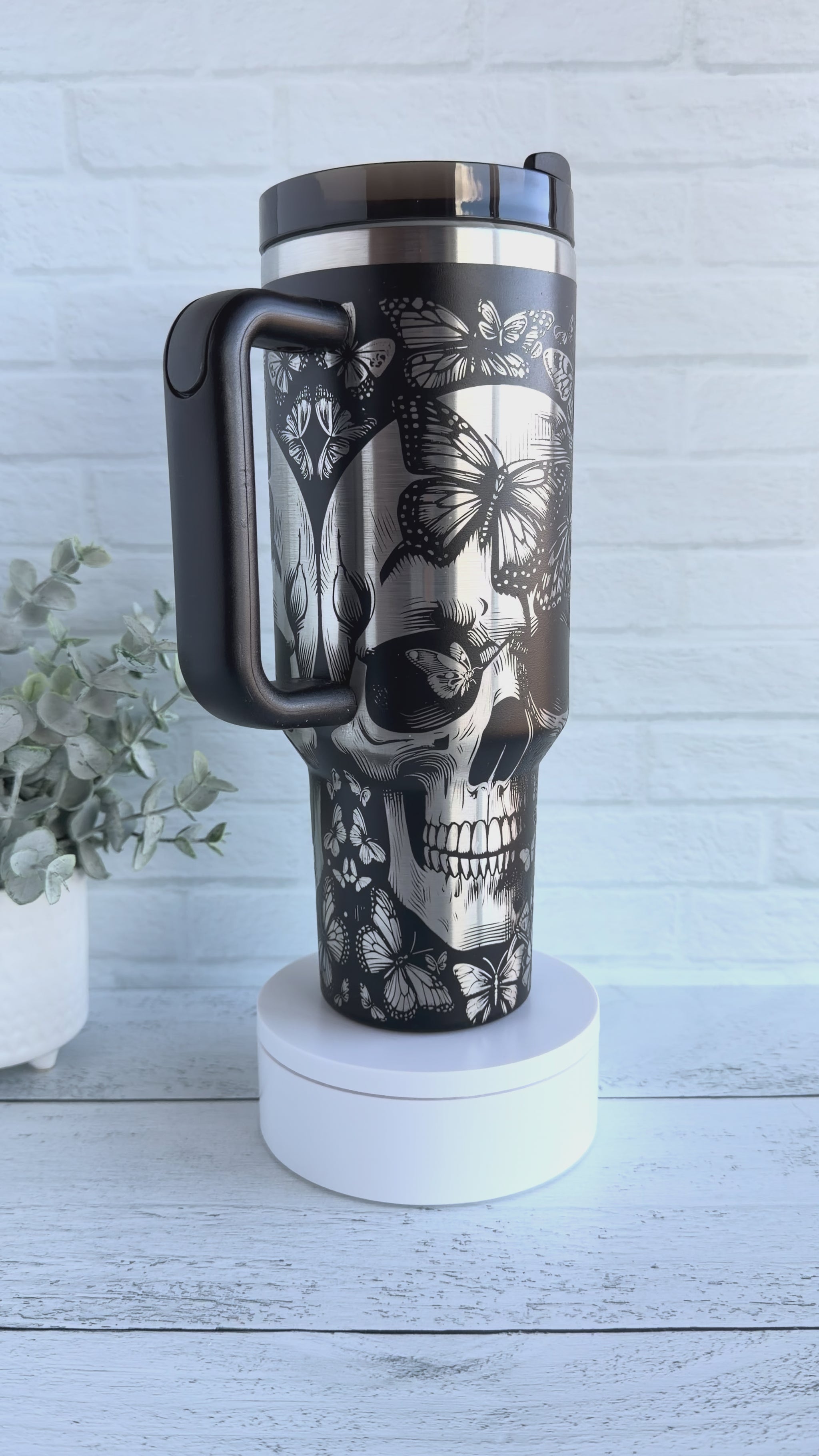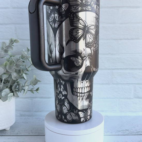 40 oz Tumbler - Butterfly Skeleton on Black RTS
