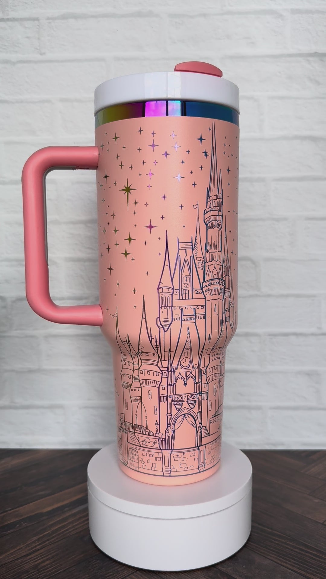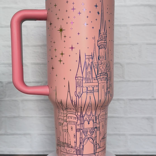 40 Oz Tumbler - Magical Castle with Quote Pastel Orange on rainbow RTS