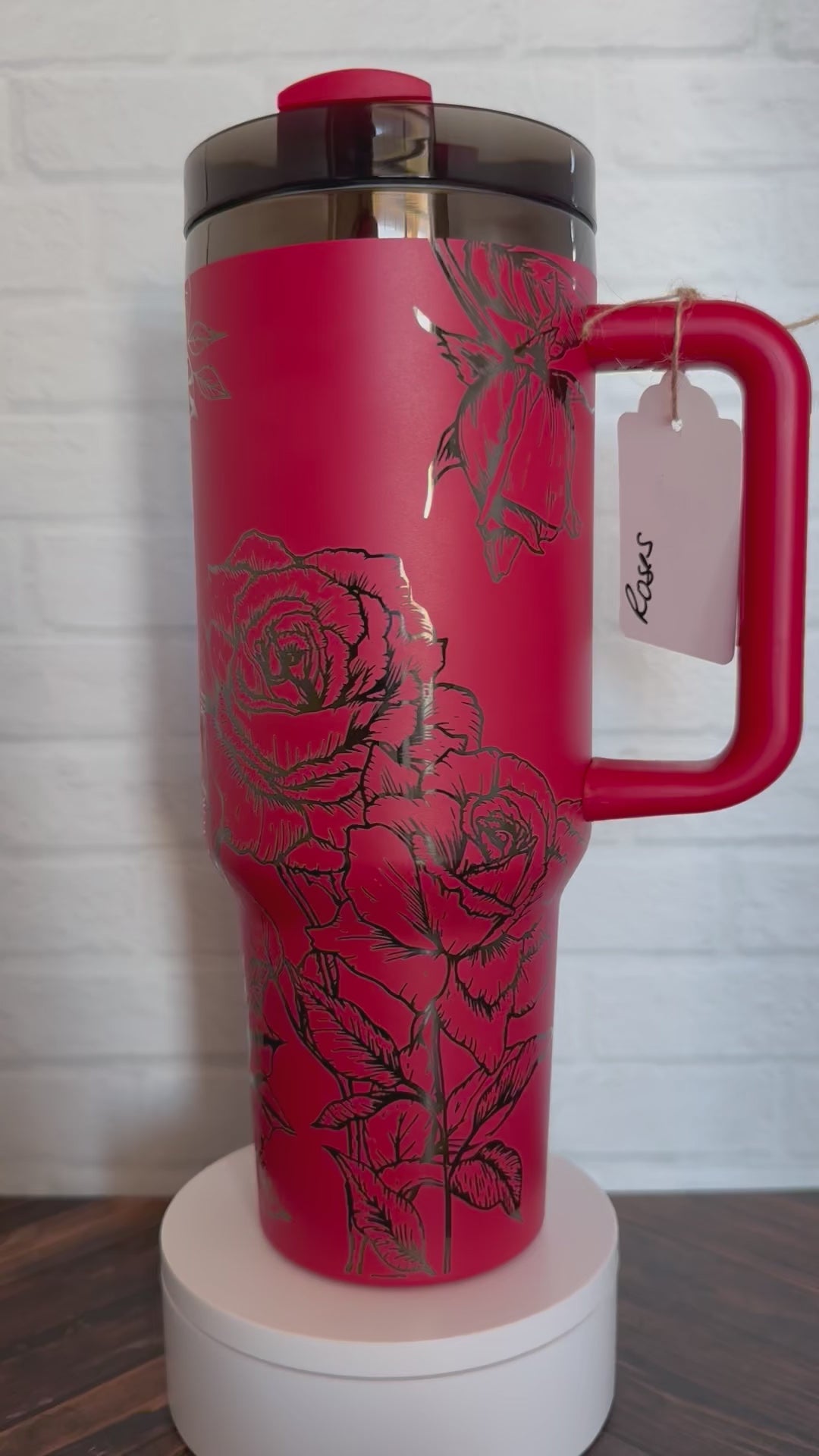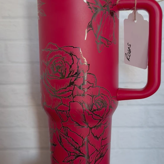40 oz Tumbler - Roses on Red that engraves Black RTS