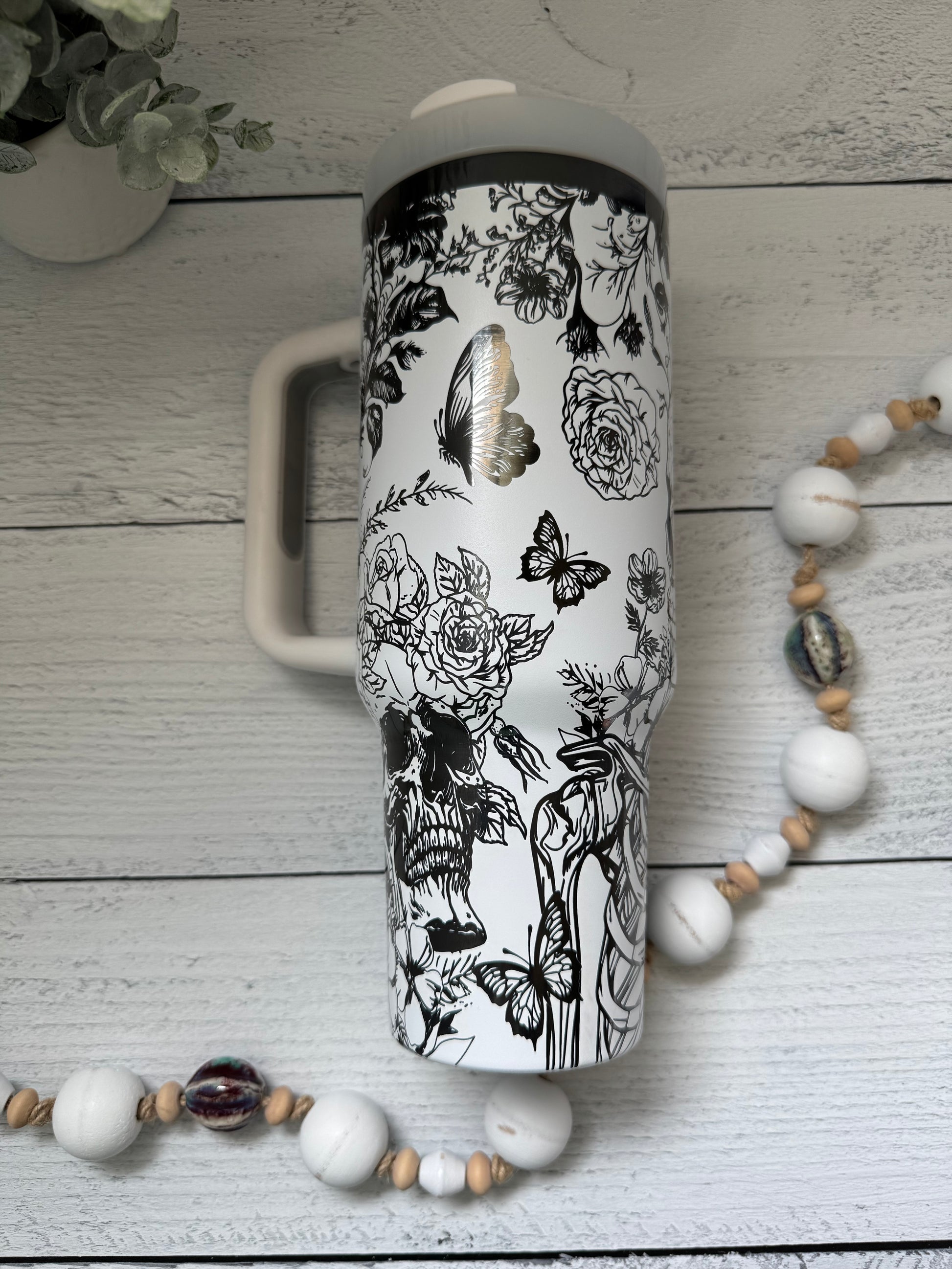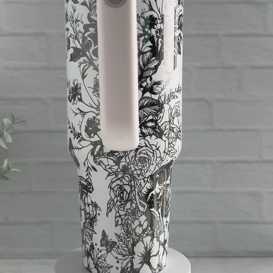 40 oz Tumbler - Skeleton Garden White on Black RTS