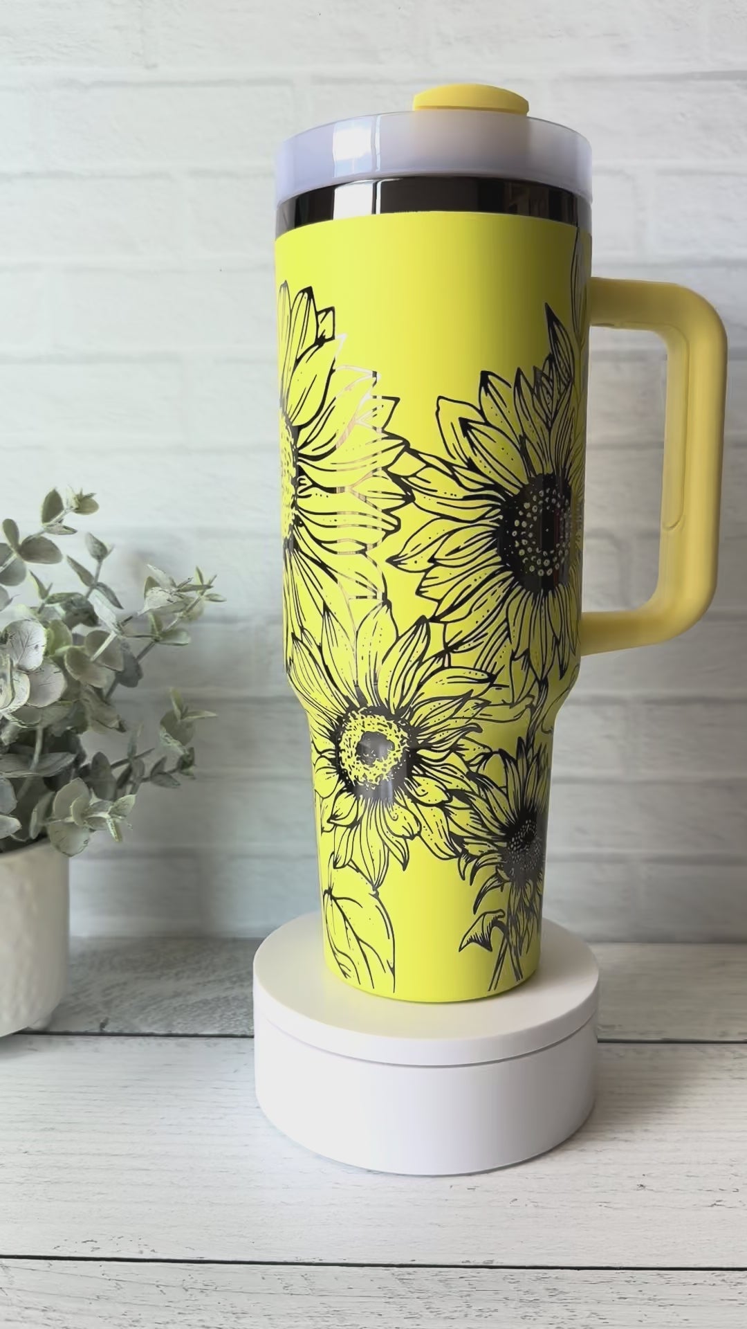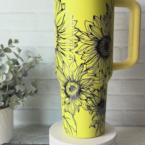 40 Oz Tumbler - Sunflowers - Yellow on Black Chrome RTS