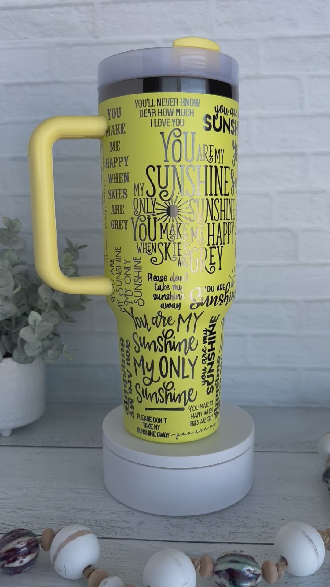 40 Oz Tumbler - You Are My Sunshine Yellow engraves Black RTS