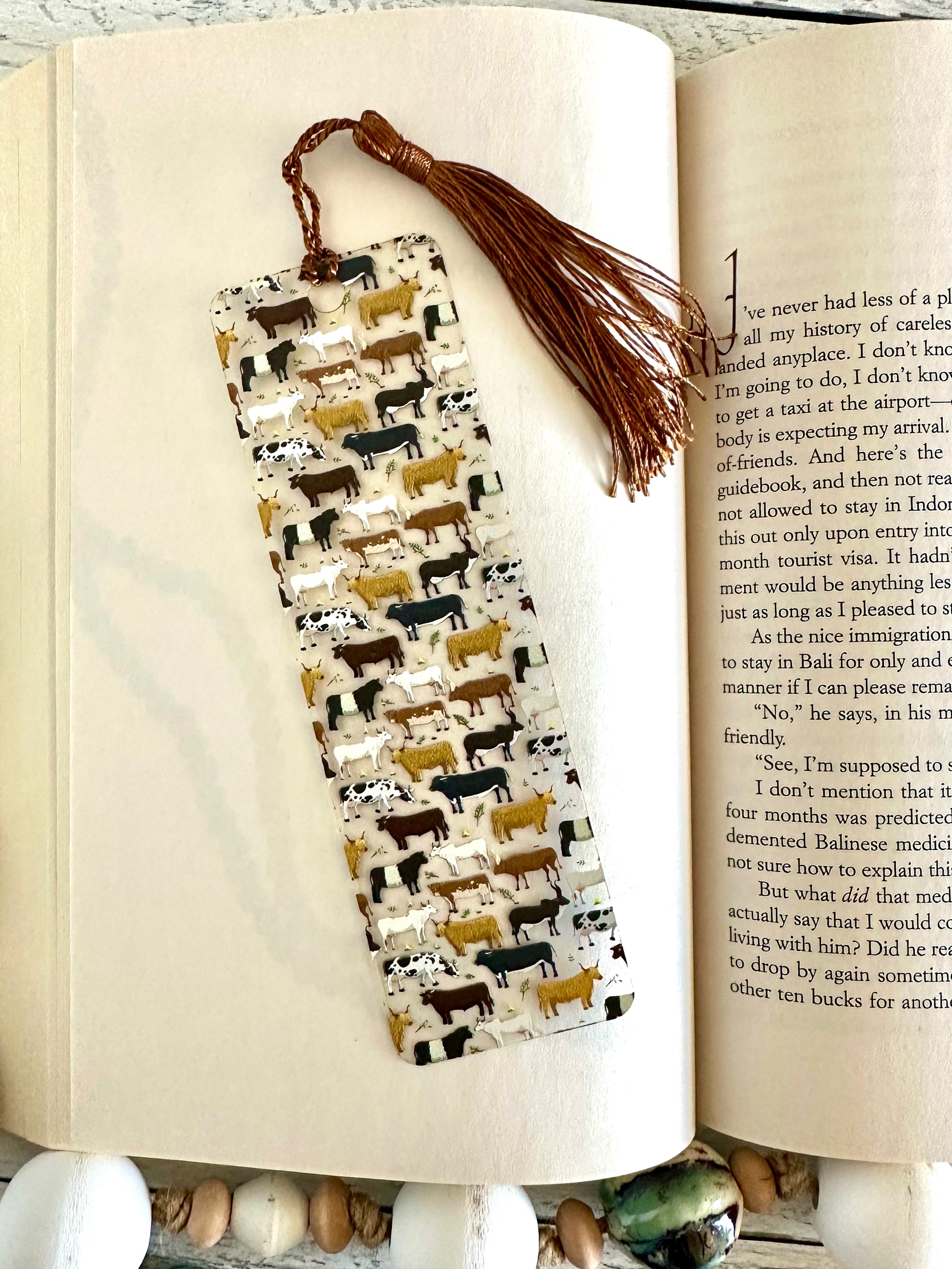 Each bookmark measures 5.75 inches long by 1.75 inches wide and features an acrylic base with a playful pattern printed directly onto the material for a durable finish. Because some designs use random patterns, each bookmark is truly one of a kind and may vary slightly from the photos shown.